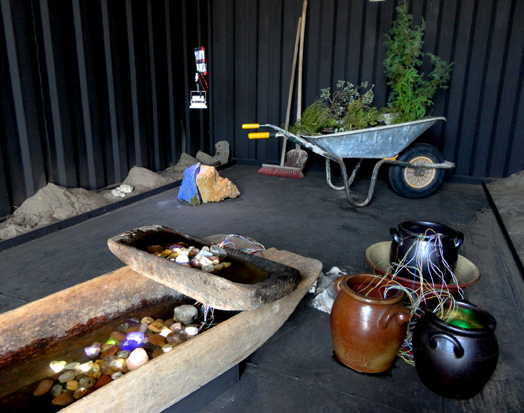 Ausgangspunkt für Peter Ojsteseks Installation “Quartz de Luxe” ist eine Sammlung von Artefakten, die er von einer Reise auf den landschaftlichen Spuren des Eises vom Polarkreis in Skandinavien bis zum Baruther Urstromtal nach Baitz mitgebracht hat: Quarzkristalle mit LED-Leuchten, arktische Pflanzen, Gebrauchsgegenstände aus Keramik und Holz, Wasser, Sand, Steine und gegossene Betonformen.